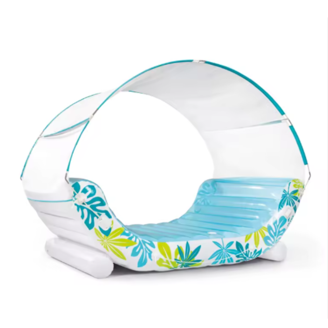 La Isla de Sombra Inflable Intex 56294 con toldo de tela y doble flotador para piscina con portavasos está hecha de vinilo duradero de 18 ga (0,45 mm), lo que garantiza un rendimiento confiable para el entretenimiento en el agua. Su tamaño inflado espacioso de 224 cm x 150 cm x 165 cm ofrece amplio espacio para relajarse y descansar.