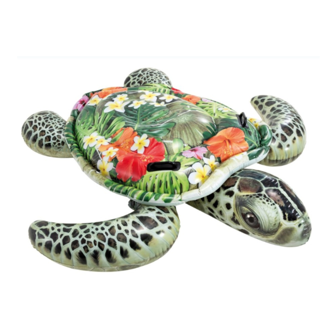 Ideal para divertirse y disfrutar en la piscina o en el lago este flotador inflable con diseño de tortuga marina realista Intex te dará muy buenos momentos para el recuerdo y las redes sociales.