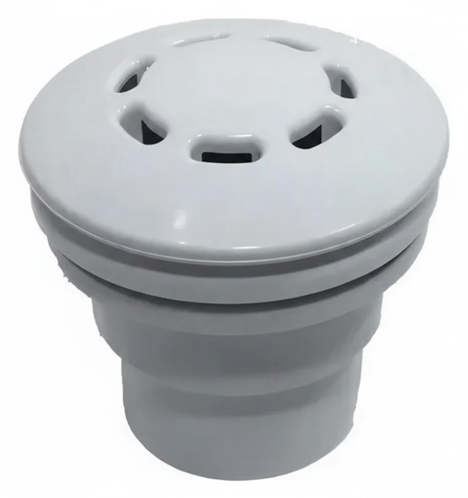 Accesorio de drenaje/succión en ABS diseñado para piscinas de fibra. Se instala en el fondo para extraer o drenar el agua, conectándose a tubería estándar de 50 mm (1½″), y viene con anillos de sellado para evitar fugas. Fabricado en plástico ABS blanco resistente, facilita el mantenimiento y vaciado del agua de la piscina de forma práctica y duradera.
