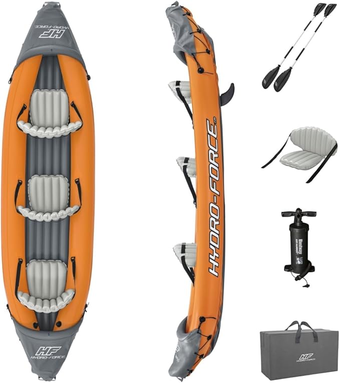 Este kayak HydroForce para 3 personas de BESTWAY ofrece una experiencia recreativa cómoda y segura en el agua. Con dimensiones de 381 x 100 cm, está fabricado en resistente PVC que garantiza durabilidad y buen rendimiento.