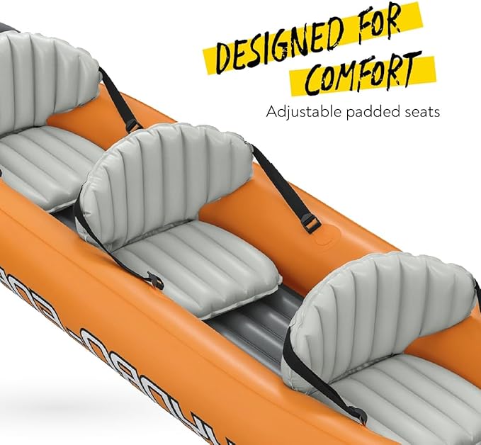 Perfecto para disfrutar en familia o con amigos, este kayak inflable combina practicidad y diversión en un diseño espacioso y estable.